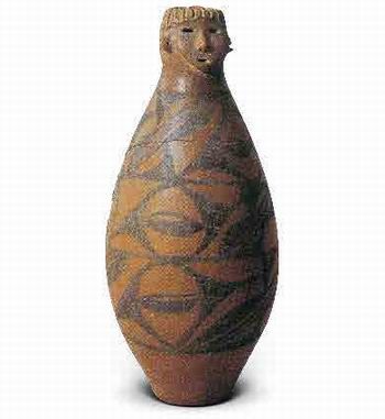 彩陶人头器口瓶 仰韶文化庙底沟类型,甘肃省博物馆藏 甘肃秦安大地湾出土