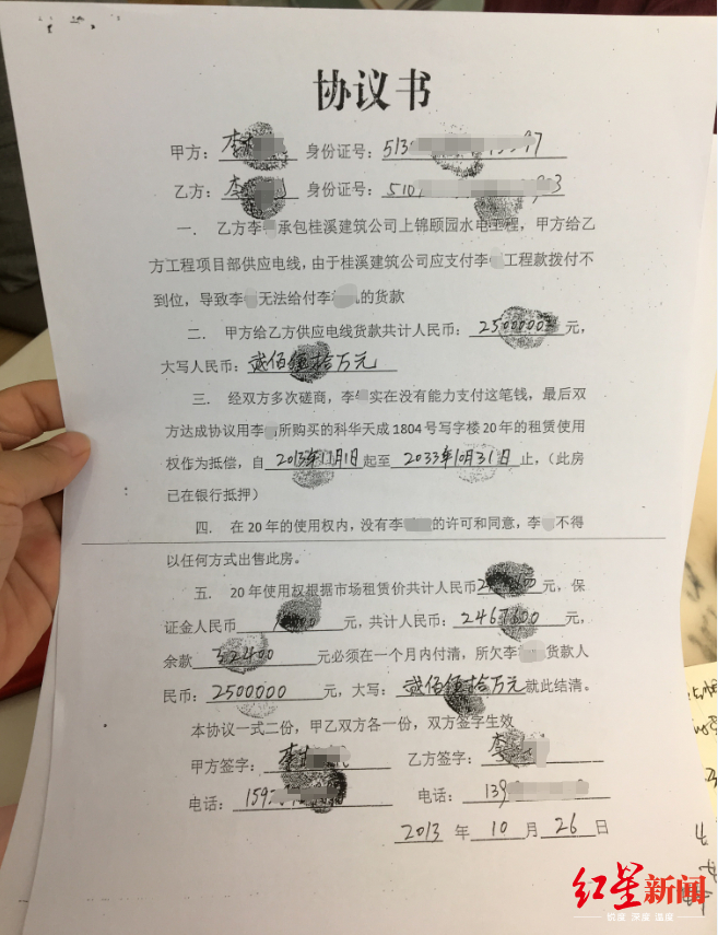 “我是一个翘脚老板,除了出钱,进货和出货均交给员工去办,手下有四至六个员工。”李浩宇说,李娟拖欠他500多万货款,用了两套房子的使用权作为抵偿,其他货款用现金偿还,现在已经全部结清。拿到房子使用权后,他又拜托李娟将房子出租给第三方使用,直到2018年4月,他将房子收回。不过记者留意到,李浩宇与房子所属的物业管理协议时间为2018年11月。