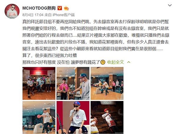 热狗吐槽《中国新说唱》,让节目组别再“挖洞”给他们跳。