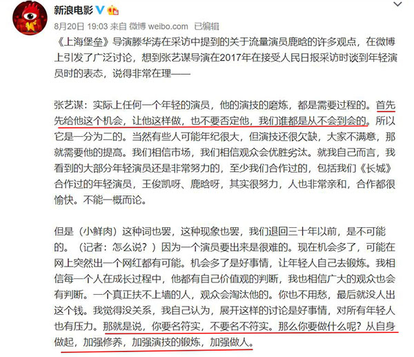 滕华涛原话并非指责鹿晗,“用错鹿晗”不是说鹿晗是“错”的,而是说导演没有用“对”他。