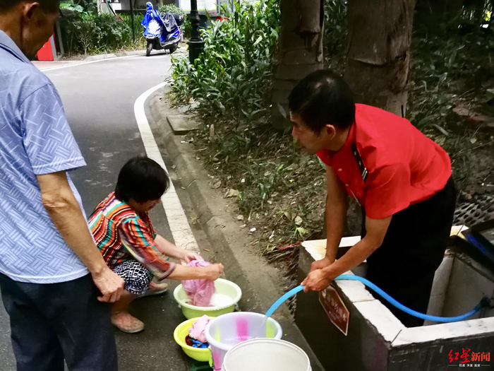 ↑业主在取水点洗衣服、接水