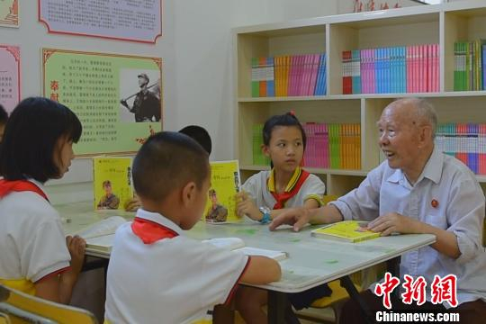 钟挺华在东安二小图书馆为学生讲雷锋故事。 严洁 摄