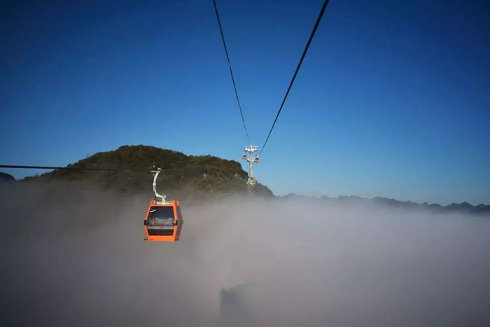 乘坐索道可以给游客带来高空穿越湿地湖泊、峰从峡谷的新奇体验,一条“玉带”蜿蜒而上,山空谷静,鸟啼虫鸣,郁郁葱葱的森林,潺潺的山泉,碧玉般的明湖犹如平镜,山峰树木倒映成趣,形成了山水一色的景观。