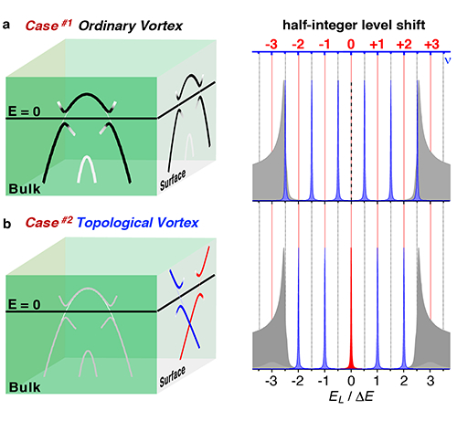 图4 狄拉克表面态诱导的半整数能级嬗移,体现了马约拉纳零能模的拓扑非平庸本质。