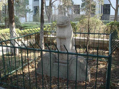 西郊多山,亦多古刹,昔丛林间有虎出没,为佑香客平安,乃于出城去西山要道立虎庙以祓禳。庙已早倾圮,石虎亦久埋没,然此处仍沿称老虎庙。建国以后五十年代,始兴楼舍,全国总工会创干校于此,石虎出土,虎头虽有漶蚀,然其造型古朴简练,神雄气厚,非近世剔透之作,殊可珍贵,今为工运学院保护妥陈,是古文物之幸。一九八八年一月作人题于花园村并志。
