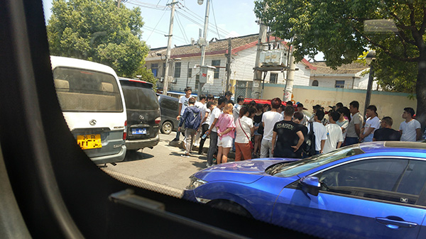 熙熙攘攘的人群中,还有一些拍照与卖笔的商贩,他们用扩音喇叭喊着:“笔2元一支,拍照10元,考试要用到!”劳务公司人员也用喇叭喊着:“进某某厂的人到这集合!”叫卖声和吵嚷声不绝于耳。