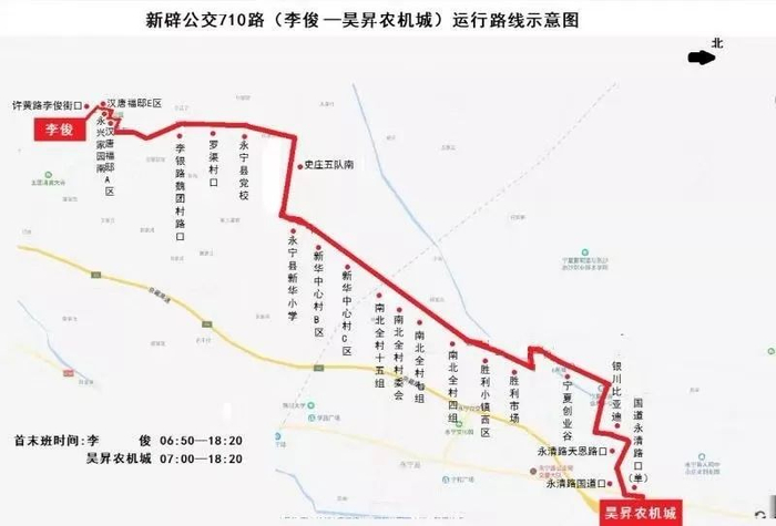 李俊、许黄路李俊街口、汉唐福邸E区、永兴家园南、汉唐福邸A区、李银路魏团村路口、罗渠村口、永宁县党校、史庄五队南、永宁县新华小学、新华中心村B区、新华中心村C区、南北全村十五组、南北全村村委会、南北全村七组、南北全村四组、胜利小镇西区、胜利市场、宁夏创业谷、银川比亚迪、永清路天恩路口、永清路国道口、国道永清路口(单)、昊昇农机城