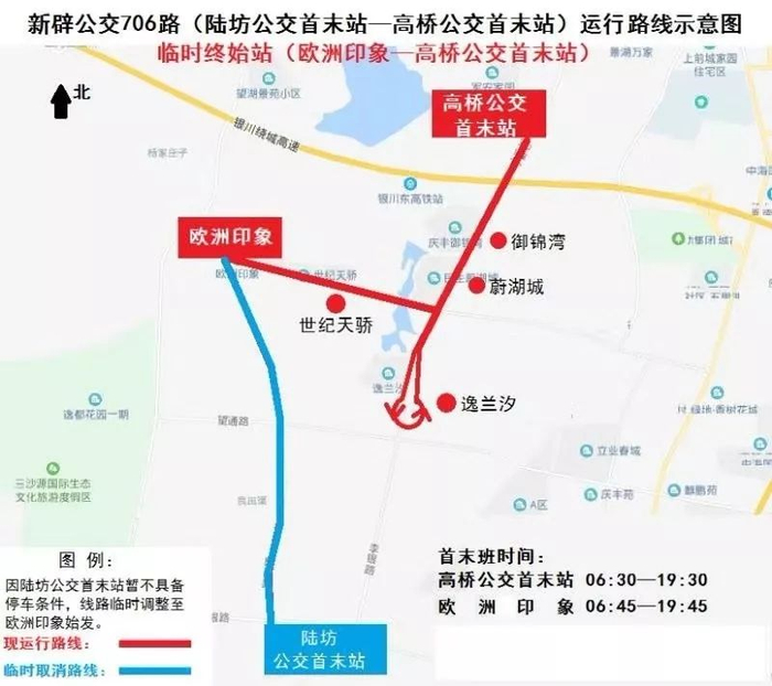 注:因陆坊公交首末站暂不具备停车条件,线路临时调整至欧洲印象始发,运行路线为: