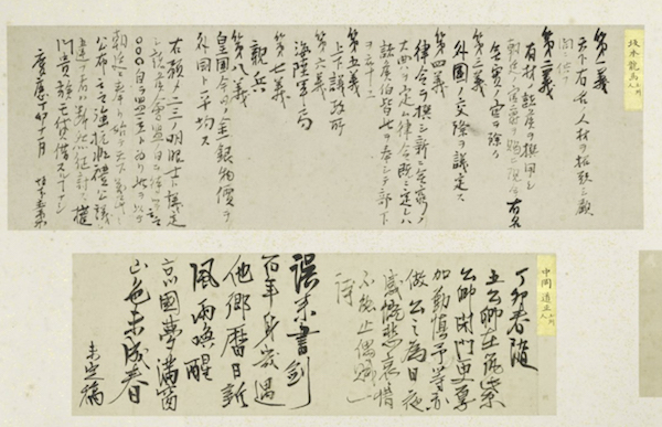自1865年开始,身为当时最重要的海运贸易企业负责人的坂本龙马,就开始积极撮合原本对立的萨摩藩与长州藩和解乃至结成同盟。因为他认为要结束当时日本国内政治乱局,洗刷革新日本政治,势必需要当时这两个最强大的雄藩联合一致。在劝说西乡隆盛时,他慷慨陈词,阐发自己的用心:“我们之所以挺身而出为萨长二藩奔走,既非为了你们两藩着想,也不是为了自身的名利,而是为了这个国家。相信你们各自都有各自的主张,但能否先将这些小事放到一边,展现你们的赤诚之心,为天下兴亡而共论将来呢?”尽管一手促成了“萨长同盟”,但龙马对日本未来的政治构建却与之后的明治政府大相径庭。他提出著名的《船中八策》时,有一个重要的政治前提,即日本国内的政治体制应从传统的幕府独裁和平过渡到集体领导。