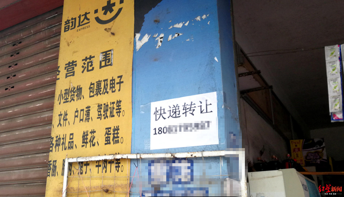 ↑四川资中县兴隆街镇,某快递网点贴出的转让信息
