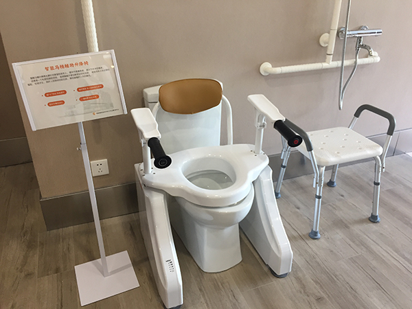 该服务中心内的智能马桶辅助升降椅。