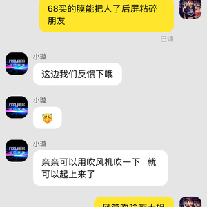 消费者“xiao阿钰”在8月27日向黑猫投诉平台反映:“我于6.27日在天猫(非尼膜属征诚专卖店)68元买的手机钢化膜.8月26日晚上不想用了把膜撕了的时候膜撕不下来 并且膜上面的胶全部残留在手机上面。手机背面玻璃已经被钢化膜粘下来了。手机主板漏出来了。我联系客服。客服说用风筒吹就能下来 但是只字不提手机玻璃坏了的问题!接着打客服电话也没有解决方案。之后店铺主管人员打电话让我把手机邮过去他给换玻璃.我没同意 我让他打给我们当地苹果维修公司问报价多少。接着他们老板打来电话说让我第二天去苹果客服问报价。开发票之后他给赔。8.27日我去的苹果客服。报价3888。还说主板已经露出来了。如果坏了需要4888。我给店铺老板打电话他们竟然不管了! 要给我邮块玻璃让我自己找人压上!请问我8000元买的手机 被68元的钢化膜弄坏了我不应该要赔偿吗?我手机没修过没换过你们拿个破玻璃就要给我换是吗?还有没有人能管了”