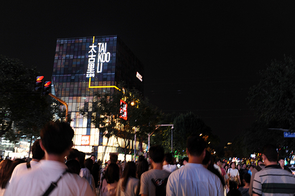 在民国时代,“夜上海”就曾闻名遐迩,是上海作为远东第一大都市的“城市品牌”之一。曾经唱响“夜上海”的地段,包括南京东路、大世界到老南市一带的大片区域,目前已经被上海市黄浦区官方统筹规划为“演艺大世界——人民广场剧场群”。演艺大世界所涉文化场馆覆盖音乐、戏曲、戏剧、商场、博物馆、运动健身等类型,截止2018年底的统计显示,区域内共有各类剧场和展演空间39个,人民广场周边1.5平方公里内运营的剧场和展演空间就有21个,密度高达每平方公里14个。 三里屯商圈打造“夜京城” 东方IC 图