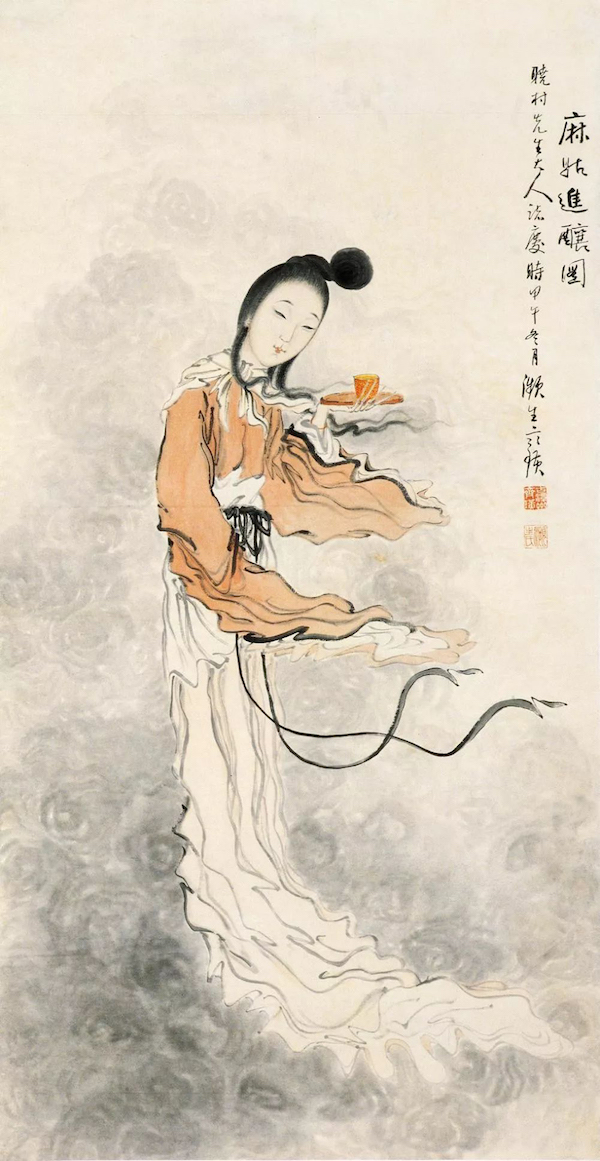 《麻姑进酿图》 齐白石 1894年 130×67.5cm 纸本设色 中央美术学院美术馆藏