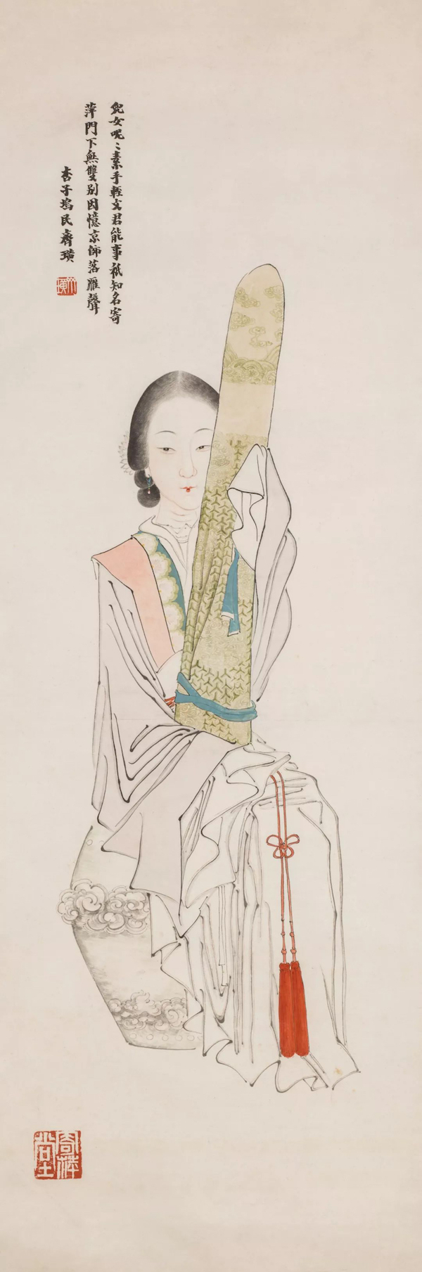 《抱琴仕女图》 齐白石 约1910—1916年 131×41cm 纸本设色 清华大学艺术博物馆藏