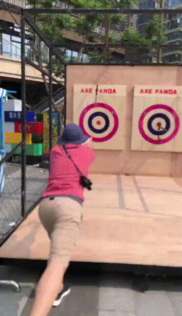 按照工作人员讲解的动作要领,记者试了五六次后,扔出的斧头也上靶了。“关键是斧子转起来,上靶时刚好是斧头的刃口。”工作人员表示,这两天有女士来扔,没几下就掌握到了,有六七成的上靶率。“刚开始一般都是双手,单手也是可以的,相对来说难一点”。