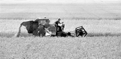 时值钟山县早稻收获的时节,燕塘镇的稻田里一派丰收的景象。在一片片黄灿灿的稻田里,三四台收割机快速作业,田埂上堆满了装袋了的谷子。廖记发看着一袋袋不断装满,喜笑颜开。