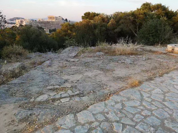 我在雅典租住一周的酒店附近,有一座通常被称作“缪斯山”的菲洛帕波斯山(Filopappou Hill),我独来独往,每每晨昏登山,走着走着就到了与其相连的普尼克斯山(Pnyx Hill)要塞,竟遇见默冬(Meton)天文台太阳钟遗址——那位天文学家曾借第八十七届奥运会(公元前四三二年)宣布十九年七闰规则,而以他命名的四米见方的太阳钟,对角线直指向卫城与利卡维多斯山(Lykavittos Hill)正中间的位置——雅典立法以夏至日为一年之首,当天的太阳恰恰初升于那一点。利卡维多斯山被阿里斯托芬写进了喜剧《云》,诗人也没有浪费默冬这个角色,他手持测量仪器出现在嘲弄“理想国”的剧本《鸟》中。