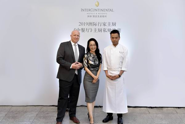 洲际酒店集团大中华区首席运营官Daniel Aylmer、洲际酒店集团大中华区首席营销官王蔺和洲际行家主厨林述巍