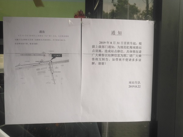 图说:南站车队贴出的站点移位通知
