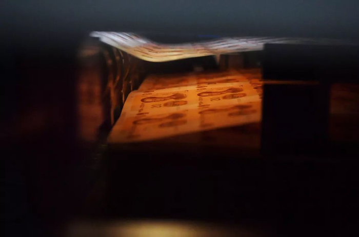 第二道工序是凹印,真钞所特有的凹凸感即来自于这种印刷方式。上述负责人称,凹印是印钞生产体系中的核心工序。凹印图纹具有明显的立体感、层次感和凹凸手感,防伪性能突出。钞票中的毛主席人像、行名、国徽、背面主景图案、行长之章、年号等重要图案均采用凹印印刷。