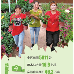 自治区林业和草原局局长阿合买提江·米那木介绍,截至目前,全区苗圃已达5011处,实际育苗面积46.2万亩,苗木总产量16.9亿株,苗木年产值达57.9亿元。