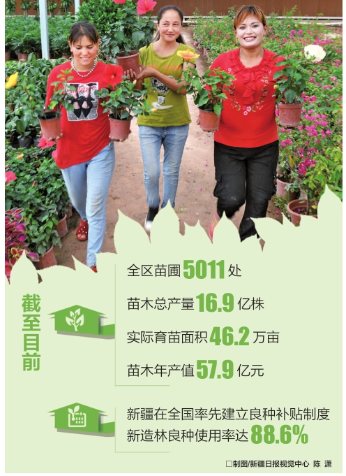 “立足新疆、面向西北、辐射中亚,这是新疆苗木花卉产业发展的定位。”自治区林业和草原局国有林场和种苗管理处处长胡茵说。(记者 刘东莱)