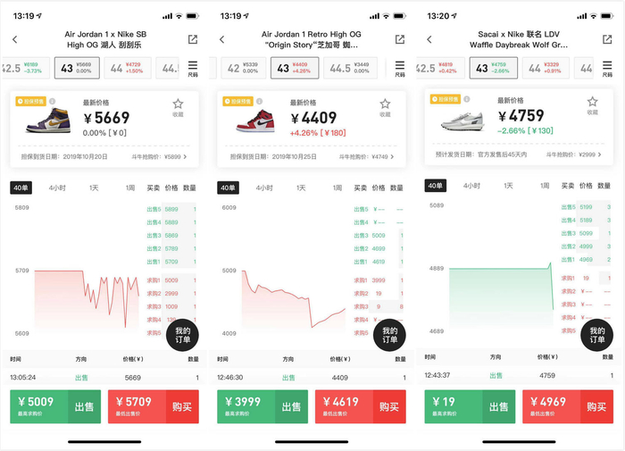 而在国外,球鞋交易平台的一个代表,是创立于2015年的美国球鞋交易平台StockX。国内的“斗牛DoNew”更像它的翻版。在这里,卖家、买家不仅可以通过K线图查看球鞋历史价格,还可以像股票交易一样进行“挂单”、“吃单”。