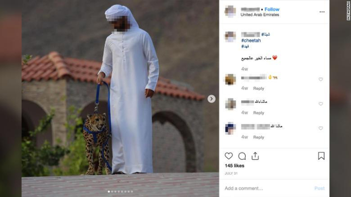 阿联酋气候变化和环境部否认该国私人住宅中有猎豹,并表示该国所有猎豹都在“有许可证的设施”中。环保部还表示,会定期追踪濒危物种销售的在线广告,目前已删除了800个此类网站。但最近几周,CNN记者在阿联酋的社交媒体上看到了很多关于宠物猎豹的帖子。
