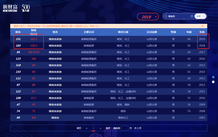 今年5月发布的《新财富500富人榜》中,姚俊良家族以102.3亿元身家继续保持在“山西首富”这一位置。不过,其身家较上一届缩水118亿元,名次下滑128位。