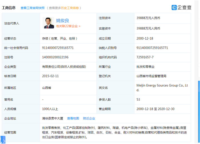 据界面、新京报等多个媒体报道,今年6月,姚俊良已2次被太原市中级人民法院列为被执行人【案号分别为(2019)晋01执431号和(2019)晋01执432号】。此外,美锦集团也3次被列入被执行人,且从案号可见,姚俊良被列入被执行人,都是和美锦集团相关的案件。
