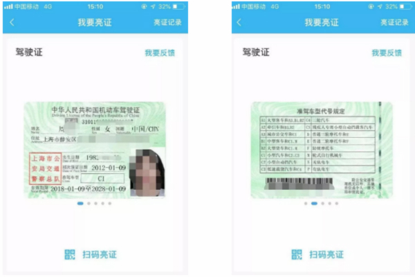 上海交警昨天宣布,9月1日起,在上海行政区域内遇有交警路面查验时,对于由上海市公安局交警总队核发的驾驶证、行驶证,当事人可使用“随申办”App 、“上海交警”App等移动端的电子证照“亮证”功能处理交通违法和事故。