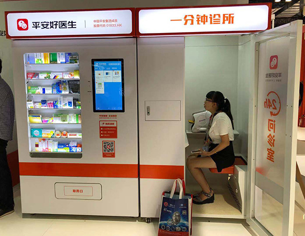 据现场工作人员介绍,在问诊结束之后,如果需要常见的非处方药,患者就可以直接从诊所内的自动售卖机上进行购买,如果涉及处方药,则由线上医生开具电子处方后,在网上药店进行下单购买。