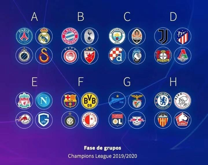 A组:巴黎圣日耳曼(法国)、皇马(西班牙)、布鲁日(比利时)、加拉塔萨雷(土耳其)