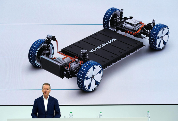 今年3月,大众汽车首席执行官赫伯特·迪斯发表讲话时表示,将公司的未来押注在MEB(模块化电动汽车生产平台)上。图据CNN