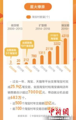 过去一年,全国淘宝村和淘宝镇网店年销售额合计超过7000亿元,在全国农村网络零售额中占比接近50%,带动就业机会超过683万个。