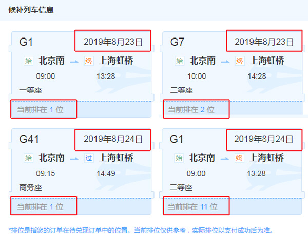 提交候补订单时,系统会提示兑现成功车票视为已购车票,退改签按既有规则办理。