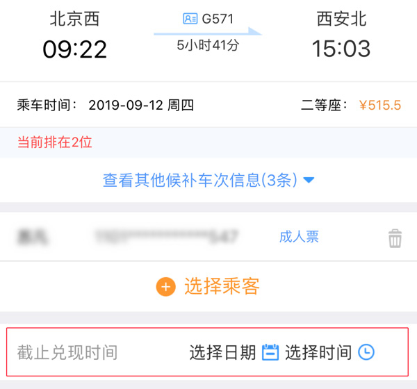 点击“候补”,会出现候补购票需求列表,同时显示候补排位。