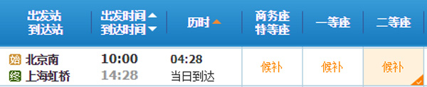 候补字样显示条件:1。车次可以进行候补;2。席别余票数量为0;3。非无座席别。