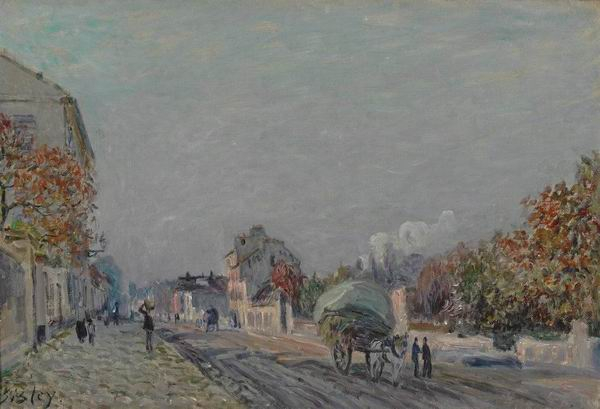 西斯莱,《马尔利在街头》,1876 - Shaheen捐赠了四件西斯莱作品,可见印象派运动的早期风格。