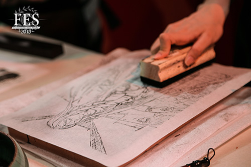 现场还有沪上知名书法家朱敬一的书法作品展示,民间剪纸艺术匠人梁岳凡带来的芙芙剪纸,桃花坞木版画传承人乔麦为FES2019创作的《FGO》从者版画。由民间糖画、面人艺人制作的《FGO》主题糖画面人,混合了童年回忆和新奇观感,让玩家倍感共鸣。