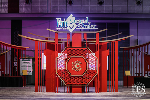 这次展会上,有一个展区的装饰风格显得尤为特别:明亮的金红配色,错落的楼宇飞檐,充满了中国古风……那就是将中国的传统文化与《FGO》结合,为内地玩家们特别设计的中华体验馆。