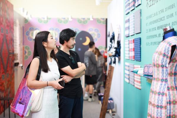 设计周上,观众在欣赏用上海土布制作的旗袍