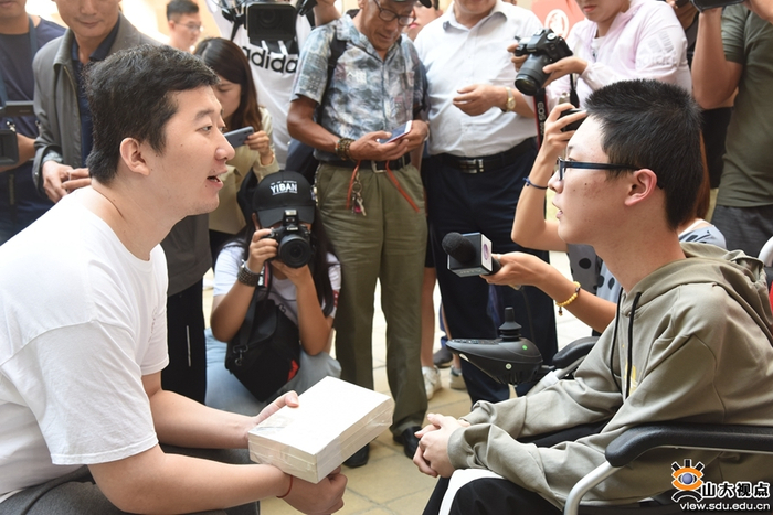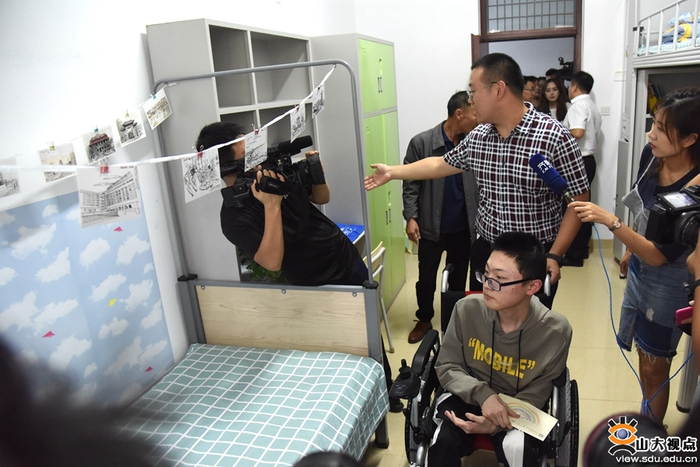 践行“学无止境、气有浩然”的校训!青岛校区,计算机学院新生王志涛完成了自己的报到。考虑到学生行走不便,学校特意为他安排了专门的宿舍,由母亲一起住宿,方便就近照顾。王志涛一直深知山大“学无止境、气有浩然”的校训,期待着能在山大踏实务实、潜心钻研,向更深更广的专业领域探索。