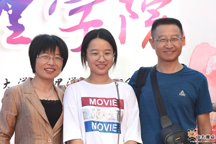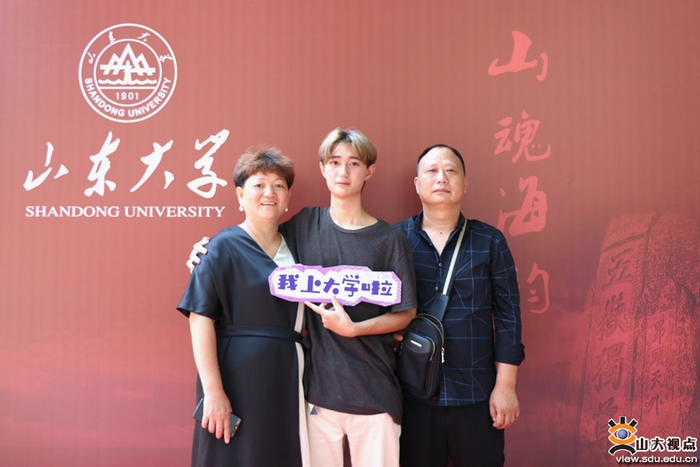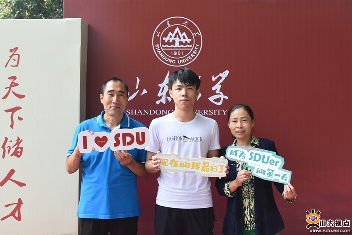 终于成为SDUer!报到现场,童鹤翱(中)和父母在山大展示牌前拍下了一张全家福。童鹤翱是一名艺术生,在艺考时行程产生冲突,学院体贴地为他重新协调了考试时间。从抱着试一试的心态报考山大,到正式报到、进入校园,一路走来,童鹤翱感触很多。他说自己在大学里最想做的,就是努力练好声乐专业。