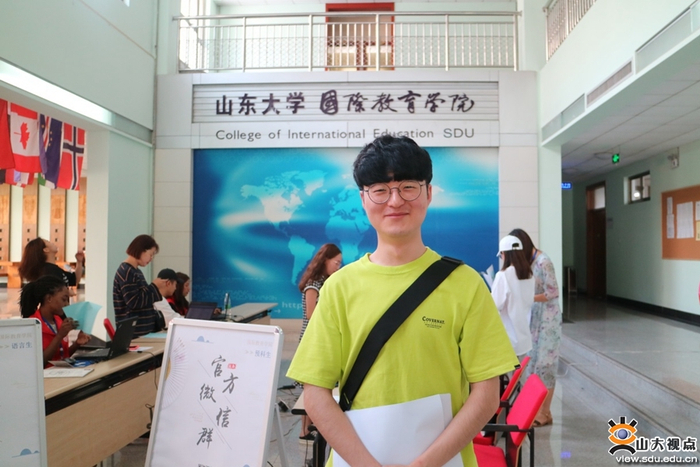 要更好地学习汉语。韩国东西大学学分班班长洪在希第一次来中国。从高中开始,他就对汉语产生了很浓厚的兴趣。在山大,他希望可以更好地学习汉语,感悟中国文化。