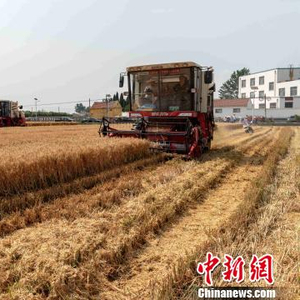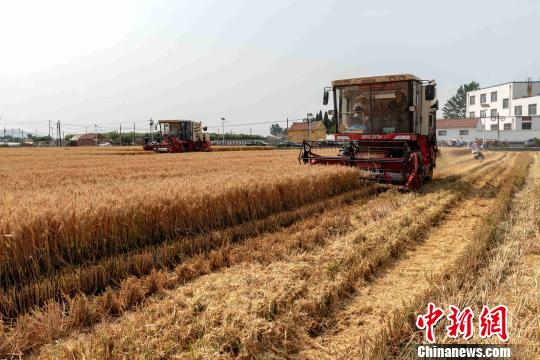 资料图:图为2019年6月19日,“济麦23”在山东招远的收获场景。山东省农科院供图