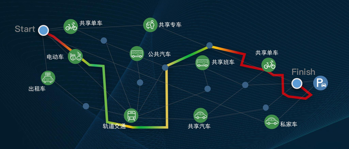 目前,我们的出行系统和交通工具是个分散的生态,找车、等车、换乘衔接、目的地停车这些行驶之外的环节往往体验很糟糕,所以我们现在对未来出行有了一个共识,就是MaaS(Mobility as a Service),出行即服务,其本质是通过数据打通了各种交通工具的边界,形成一个统一运营的系统,用户只需要在手机上设定起点、终点和价格、速度等约束条件,就可以实现端到端的最优化服务。