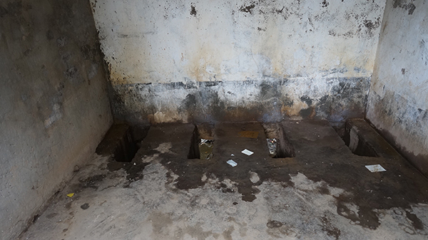 改造前的河南洛阳洛宁县丈庄小学旱厕蹲坑。 受访者供图