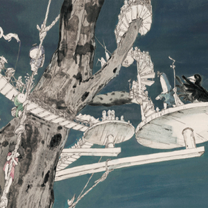 “每个人物其实原先都散落在文献当中,像闪光的碎片一样,但是我把它们全部集合在一起,赋予它们物理的空间线索,并且赋予人物的关系。”成为画家之后,成为一个小说家是熊亮很大的突破。